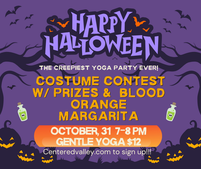 The creepiest yoga party ever! This class is a fun Halloween Costume themed party. 45 min of yoga followed by a complimentary Blood Orange Margarita or Mocktail (alcohol free version) There will be a 1st, 2nd and 3rd Prize for the costume contest! Prizes include: Boho Harem pants of your choice, free class, yoga inspired jewelry and amazing Arbonne products!